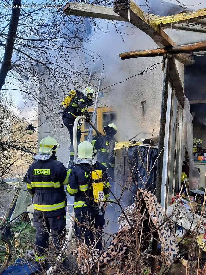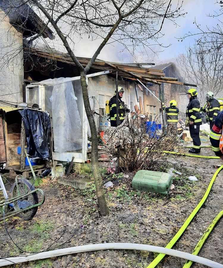 Hasiči vyjížděli k požáru krátce před půl 11. "Před příjezdem prvních jednotek byly všechny osoby mimo budovou. Po zahájení hasebních prací došlo uvnitř k výbuchu tlakové láhve, která byla dopředu avizovaná, že se nachází v kuchyni," uvedl mluvčí krajských hasičů Michal Holeček s tím, že nikdo nebyl na místě zraněn.