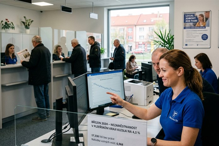 Březnová nezaměstnanost v Plzeňském kraji klesla z únorových 4,2 na 4,1 procenta. Bez práce bylo na konci března 17.336 lidí, o 490 méně než o měsíc dříve. Nabídka volných pracovních míst v regionu stagnovala na necelých 7000. Vyplývá to z informací, které zveřejnil Úřad práce ČR.
