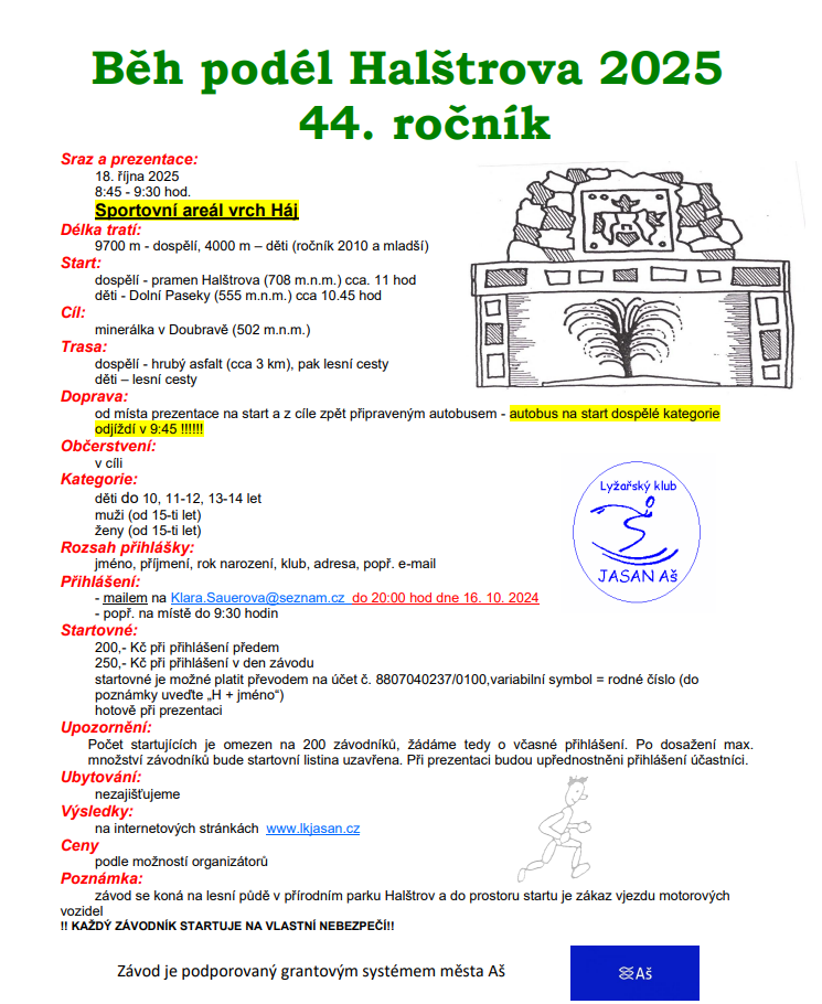- 11:00 – start dospělých (pramen Halštrova, 708 m n. m.)