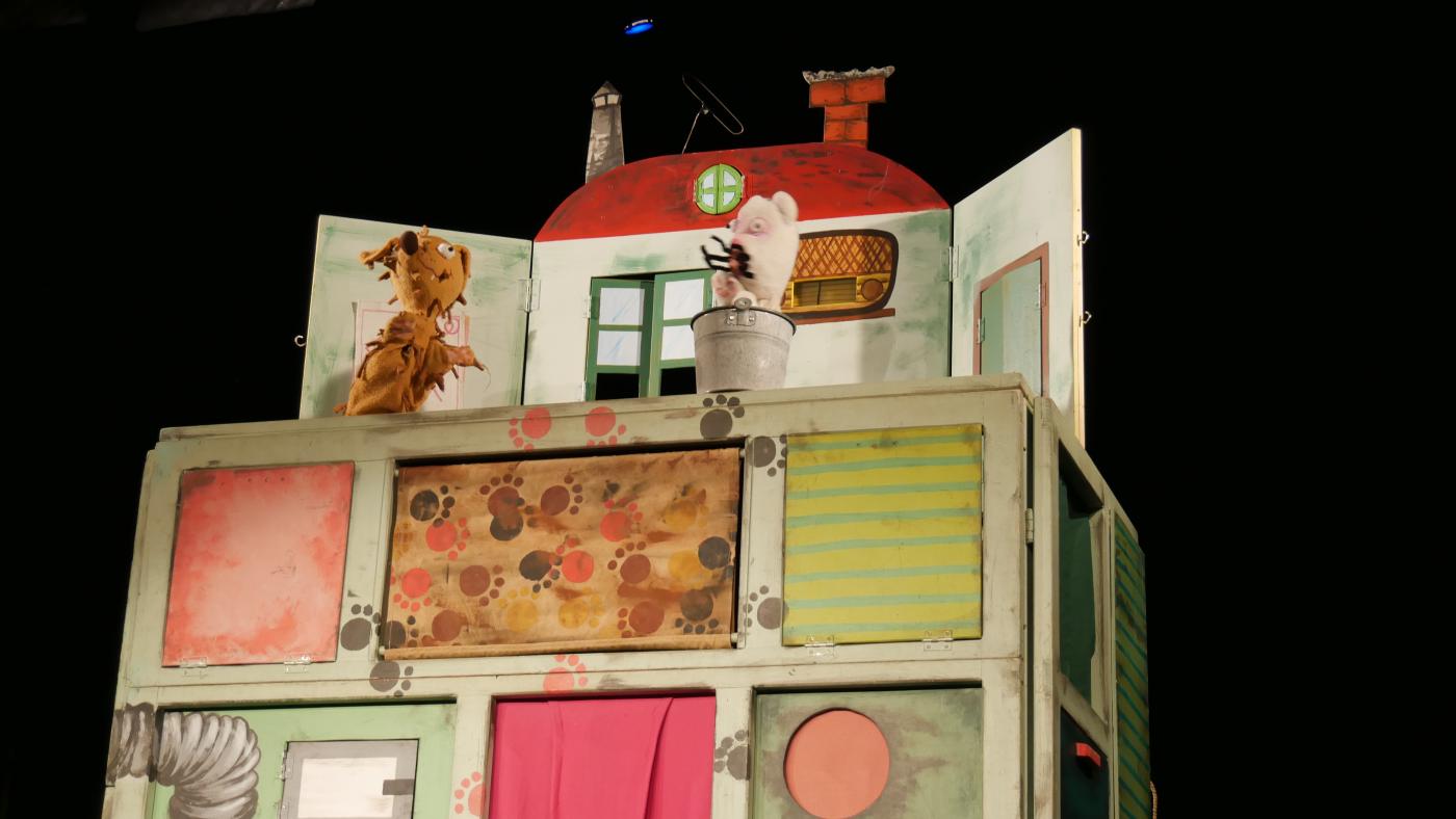 Gabriela Berková a Patrik Vojtíšek vybrali z veselých vyprávění o dvou nerozlučných kamarádech příběhy o tom, jak pejsek s kočičkou myli podlahu a dělali si k svátku dort. Na jejich základě tak vzniklo něžně groteskní maňáskové divadlo pro dva loutkoherce a spoustu diváků od 3 do 100 let.