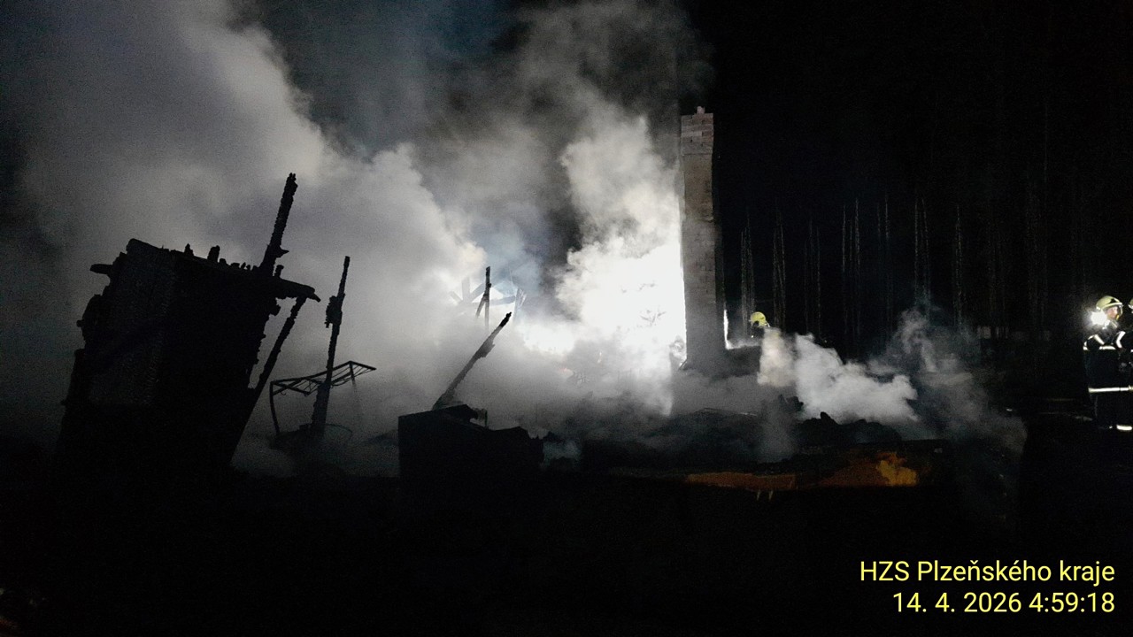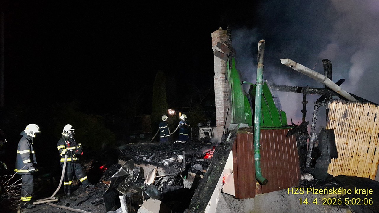 Škodu zhruba pět milionů korun napáchal noční požár chaty v Cheznovicích na Rokycansku. Hasiči museli v průběhu zásahu vynášet propanbutanovou láhev, protože hrozilo riziko exploze.