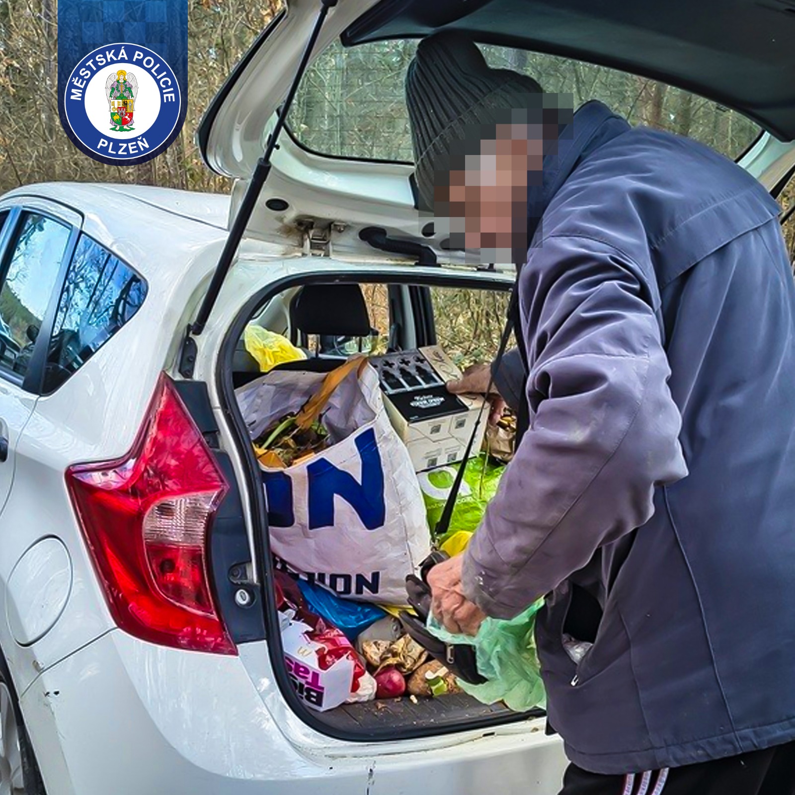Bizarnost celé situace podtrhl fakt, že senior na místo dorazil osobním vozem, jehož zavazadlový prostor byl až po okraj naplněn další várkou nepořádku připraveného k „distribuci“.