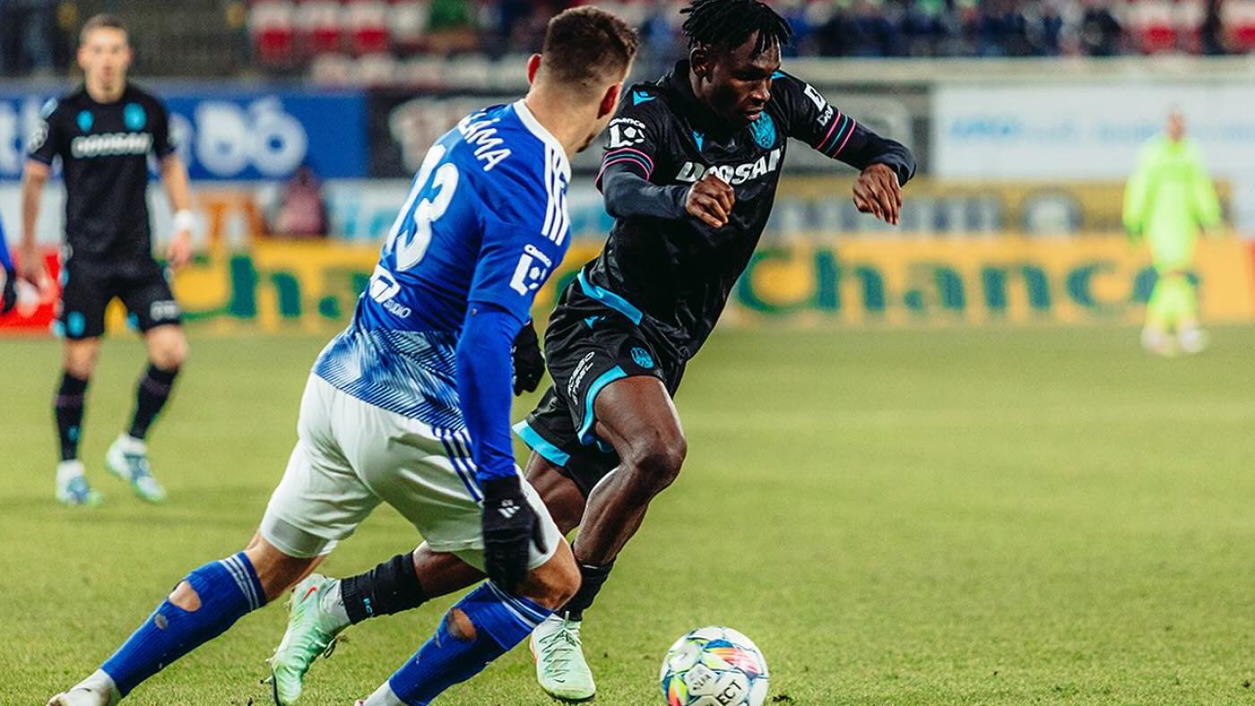 Trenér Viktorie Miroslav Koubek nemohl pro dnešní zápas počítat s nemocným Lukášem Kalvachem, kapitánskou pásku místo něj premiérově navlékl obránce Václav Jemelka a v sestavě jej nahradil Alexandr Sojka. První ostrý start v základní sestavě si odbyl i Amar Memić. V chladném večeru si hned ve 3. minutě připsal první úspěšný zákrok Martin Jedlička. První pokus Viktorky na branku soupeře znamenal gól! Na roh Cadua si perfektně naběhl Sampson Dweh a poslal míč hlavou nekompromisně do sítě. Na světelné tabuli v tu chvíli svítila j11. minuta. Další šanci měl Matěj Vydra, jeho hlavička mířila vedle branky. V 17. minutě bohužel domácí srovnali po skrumáži po rohovém kopu Janem Navrátilem. Ve 35. minutě dostal Olomouc do vedení Zorvan z penalty, když rozhodčí odpískal hraní rukou Svetozaru Markovičovi. Viktoriáni chtěli na nepříznivý stav rychle zareagovat, Lukáš Červ pálil za vápnem, domácí gólman však jeho pokus vyrazil. Ve 43. minutě si Dweh znovu naskočil na roh Cadua, tentokrát však mířil nad branku.