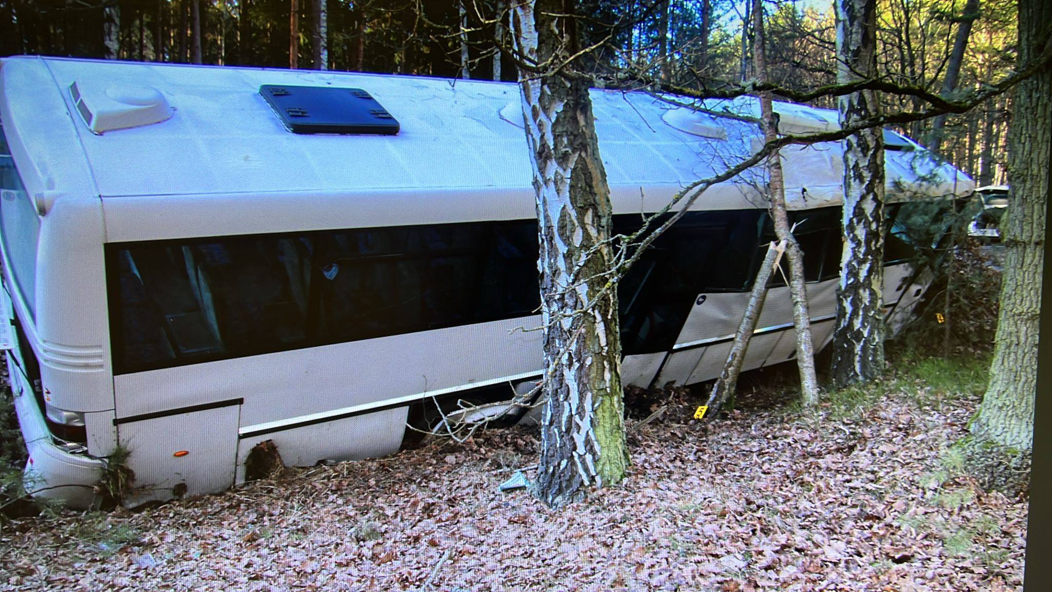 Autobus po nehodě skončil v příkopu. Hasiči po vyproštění zaklíněného řidiče provedli protipožární opatření a uhasili doutnající listí v místě nehody. Podle mluvčí krajské záchranky Karolíny Korčíková řidiče odvezla sanitka do nemocnice s poraněním hlavy a ruky.