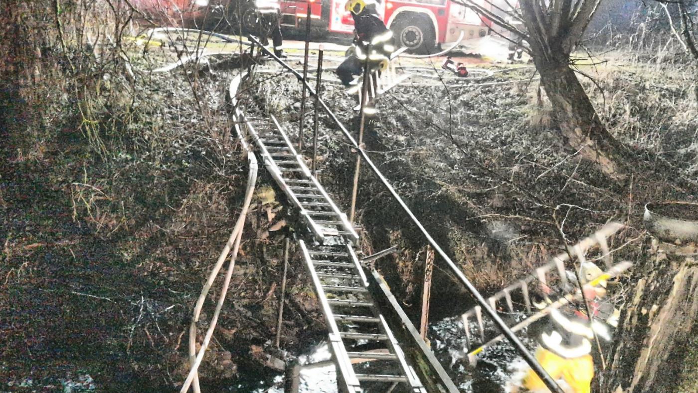 „Chata se spolu s dalšími nachází na ostrůvku tvořeném řekou a mlýnským náhonem. Už jen příjezd techniky na místo není úplně snadný. Aby se hasiči dostali až k zasaženému objektu, museli využít nastavovací žebříky, které položili přes kovovou konstrukci z lešenářských trubek, která byla zřejmě za účelem stavby lávky instalována přes náhon již v minulost,“ uvedl mluvčí hasičů Petr Poncar.