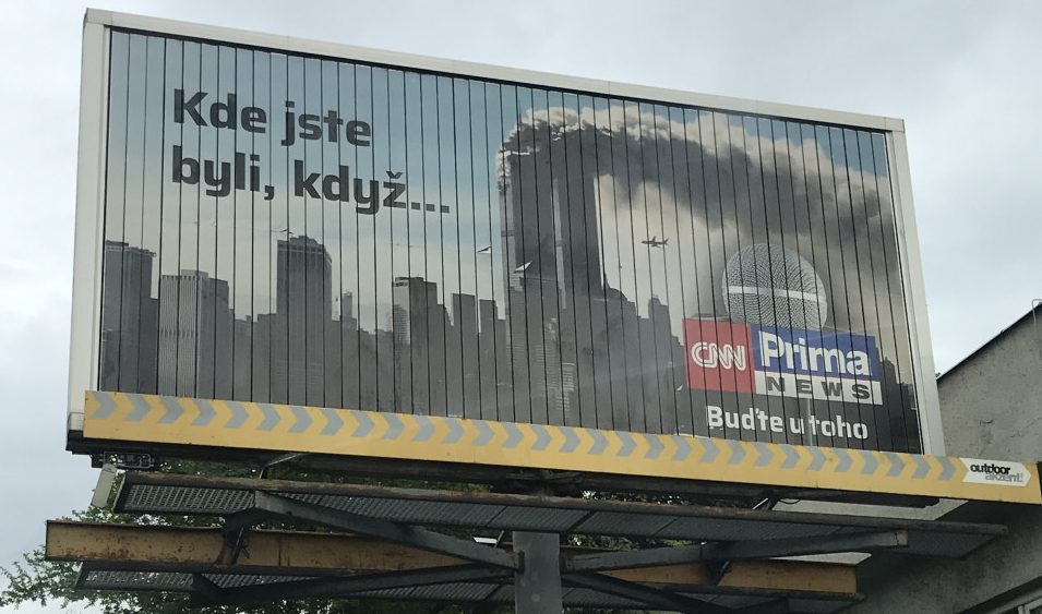 Kde jste byli, když spadla newyorská dvojčata? Nebo když jsme vyhráli olympiádu v Naganu? Na tyto a mnoho dalších zásadních momentů historie upozornila reklamní kampaň právě startujícího zpravodajského kanálu CNN Prima News. Jejich reklama byla všude. V televizi, v rádiu a samozřejmě i na internetu. Nedalo se jí uniknout. Prima si úspěšnost své kampaně pojistila také venkovní reklamou, která se ukázala jako velmi efektivní. Koho by nezaujala fotografie hořících mrakodrapů na velkoformátovém billboardu, když právě stojí na červenou? Každý si v tu chvíli vybaví, co dělal a kde byl, když letadla narazila do symbolu New Yorku. A přesně o to, v kampani šlo.