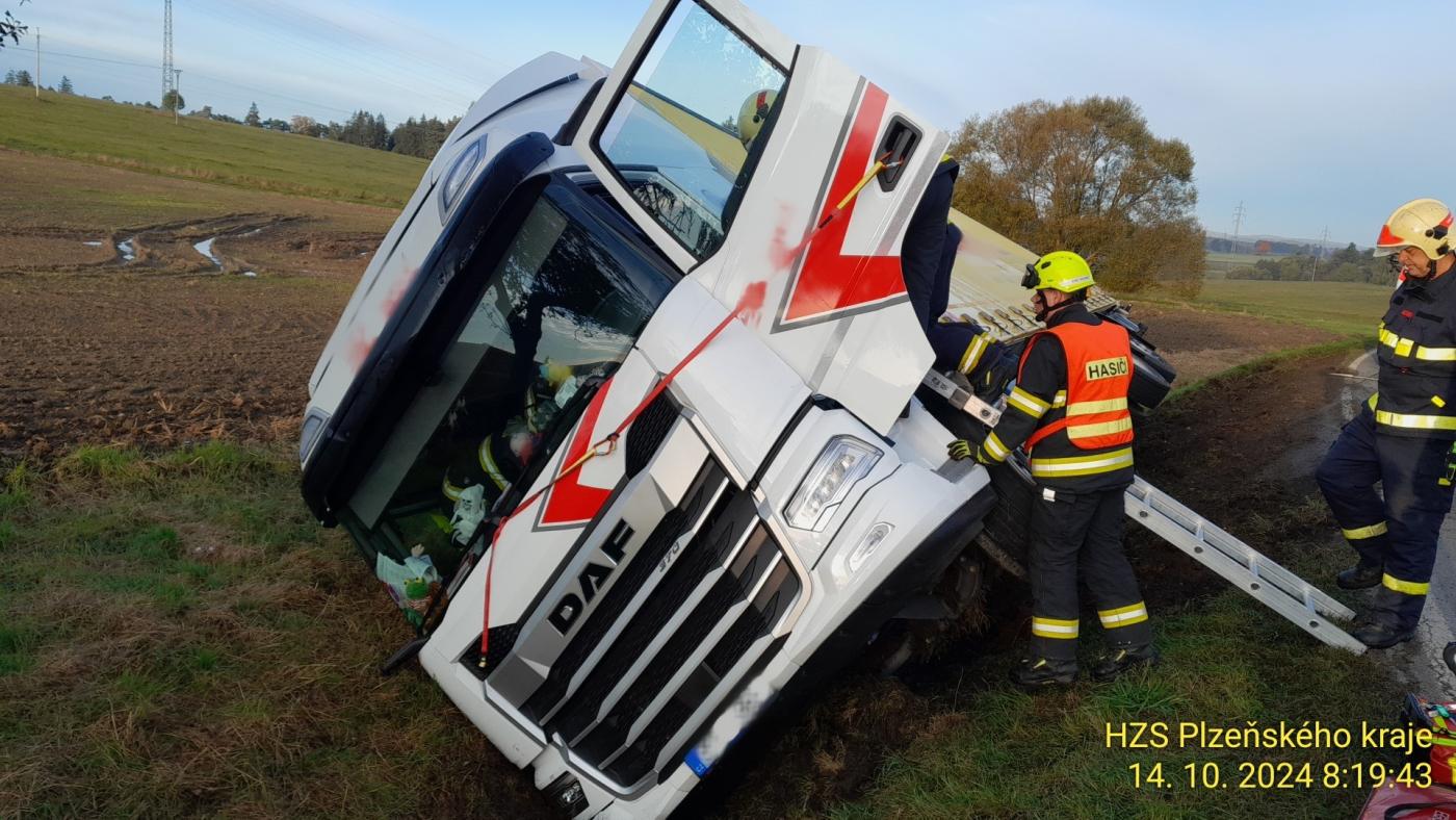 K nehodě vyjížděly všechny záchranné složky po osmé hodině ranní. "Řidič ročník 1978 jel ve směru jízdy od obce Trnová na obec Tisová. Podle dosud zjištěných skutečností při projíždění levotočivou zatáčkou nepřizpůsobil rychlost jízdy zejména svým schopnostem, vlastnostem vozidla a stavu pozemní komunikace a vyjel vpravo mimo vozovku, kde se v silničním příkopu převrátil s vozidlem tovární značky Daf na pravý bok," popsala nehodu policejní mluvčí Iva Vršecká.
