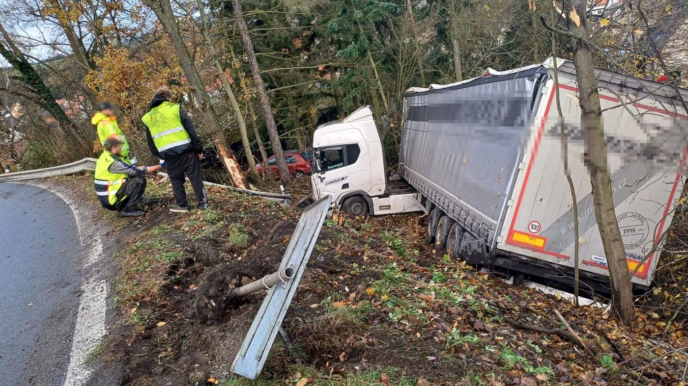 Pravděpodobně mikrospánek je příčinou nehody kamionu na hlavním tahu u Plas. Kvůli vyprošťování je silnice uzavřena.