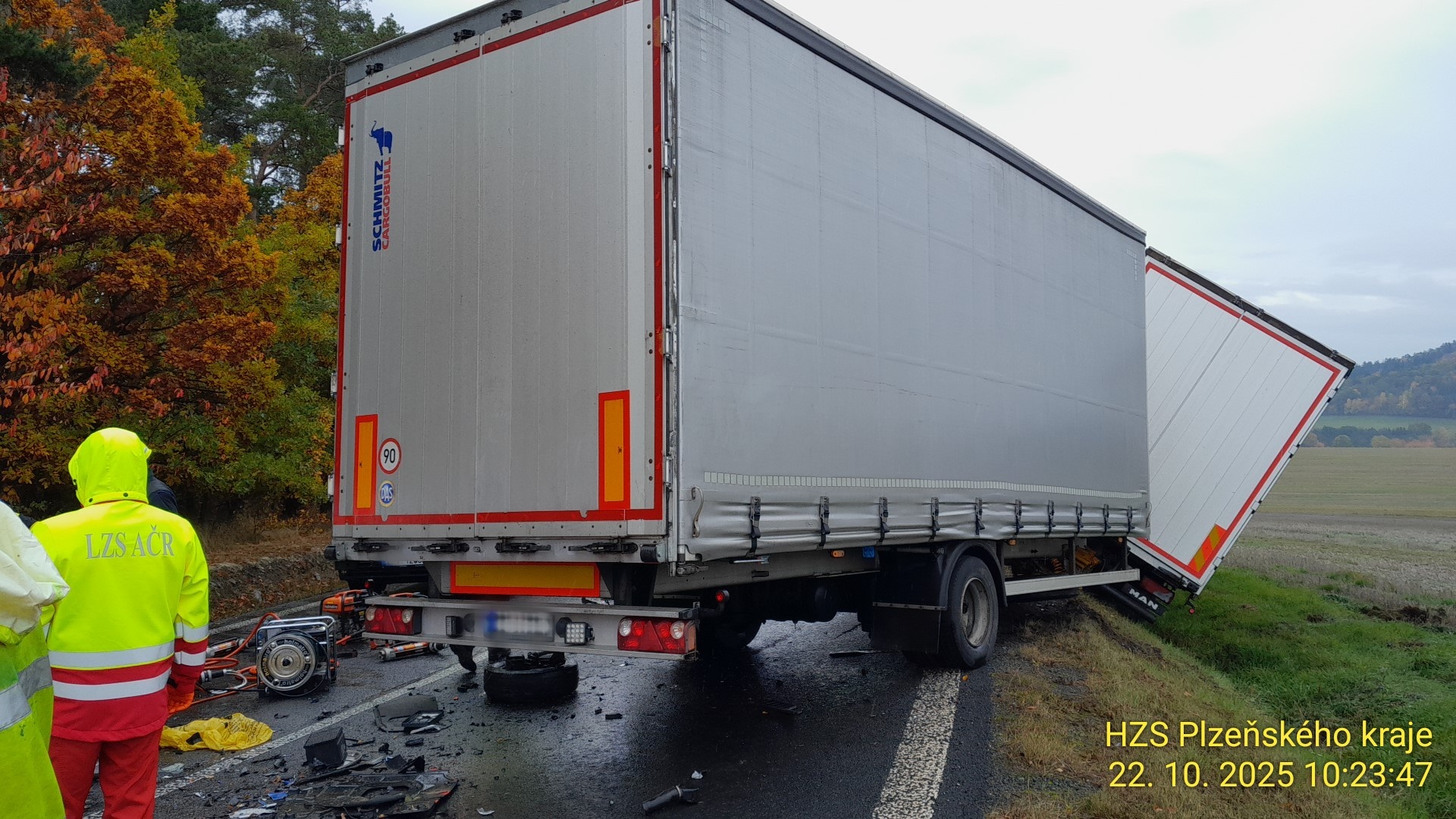 "Řidič ročník 1992 jel s vozidlem Fiat ve směru od obce Vidice na obec Bor, kdy z dosud nezjištěných příčin měl přejet do protisměru, kde se střetl s právě protijedoucím nákladním automobilem s přívěsem," uvedla policejní mluvčí Barbora Šmaterová.