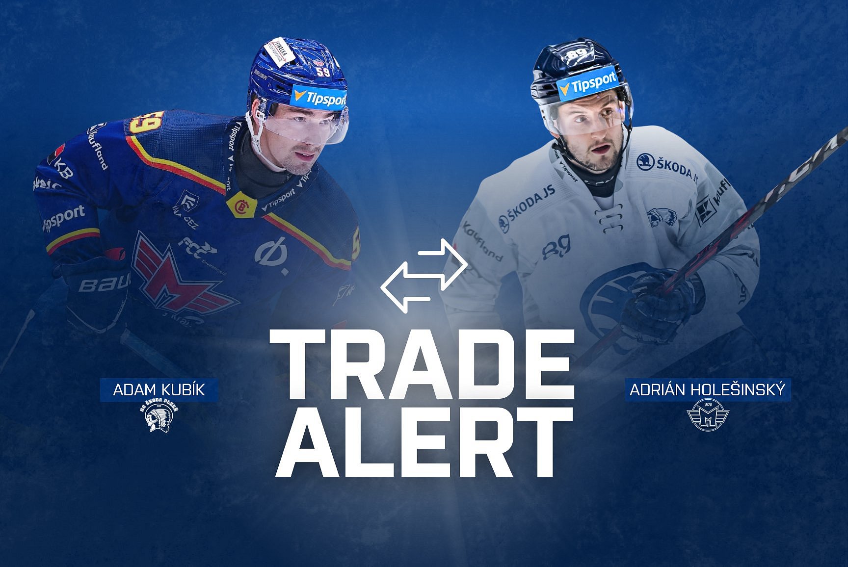 Hokejová Plzeň a České Budějovice měnili hráče. Na západ Čech míří útočník Adam Kubík opačným směrem míří slovenský reprezentant Adrián Holešinský. Extraligové kluby o dohodě informovaly na svých webech.