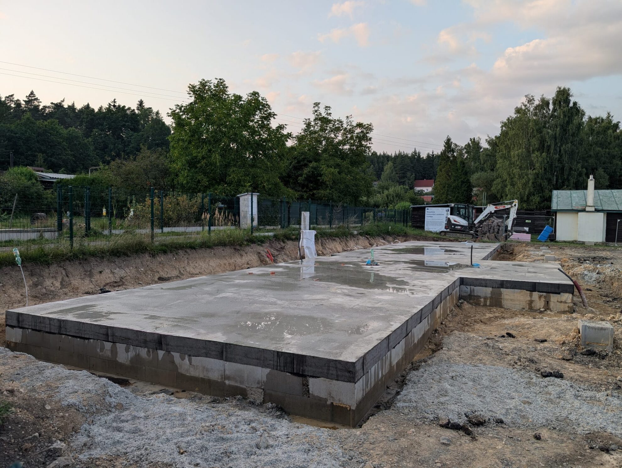 Základová deska pro novou klubovnu je již hotová. Velká technika přijede už v 6:00, hlavní chvíle dne nastane v 9:00, kdy bude na základovou desku usazen první panel. A protože půjde o dřevostavbu, bude toho už v pondělí hodně k vidění.