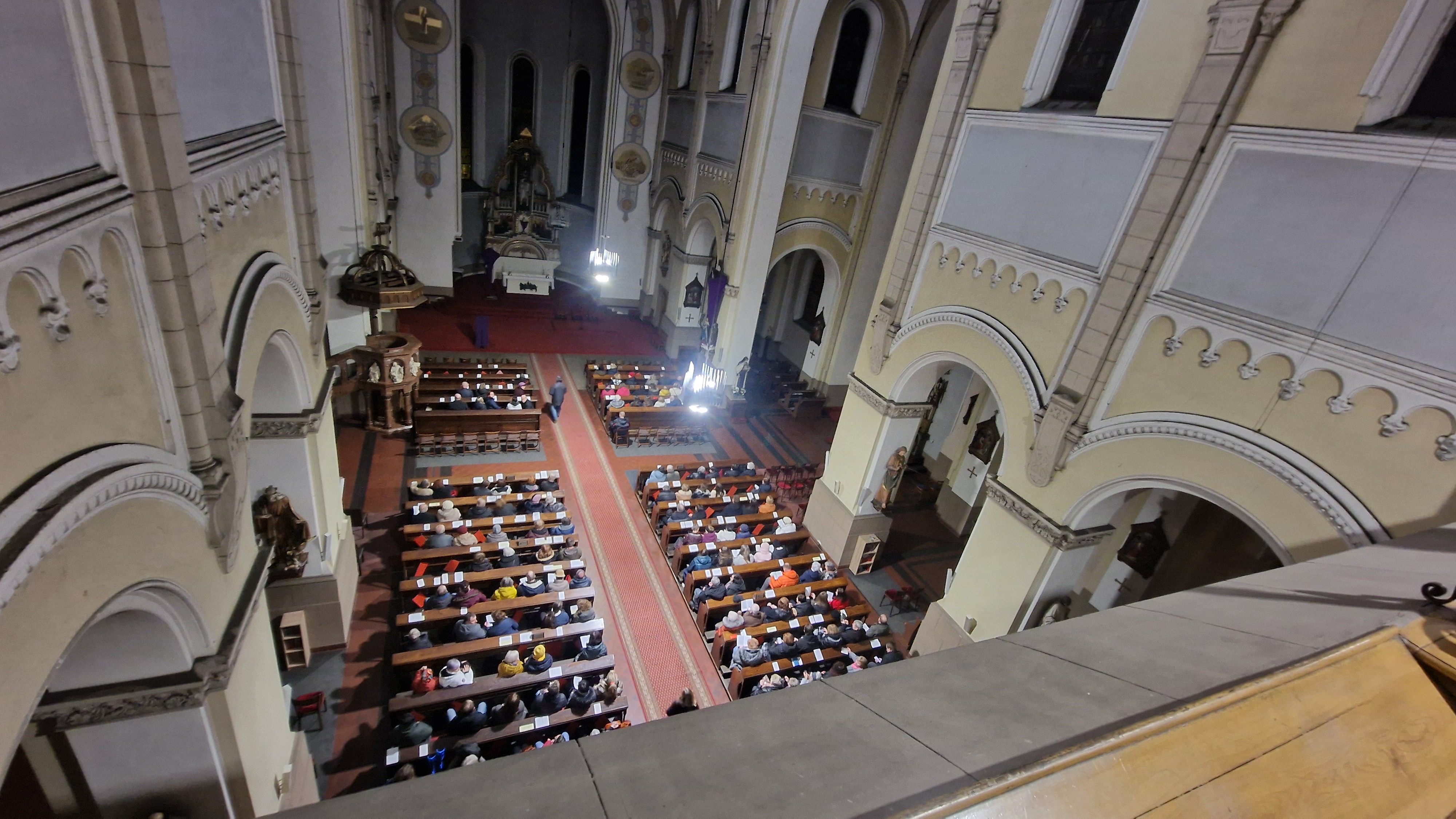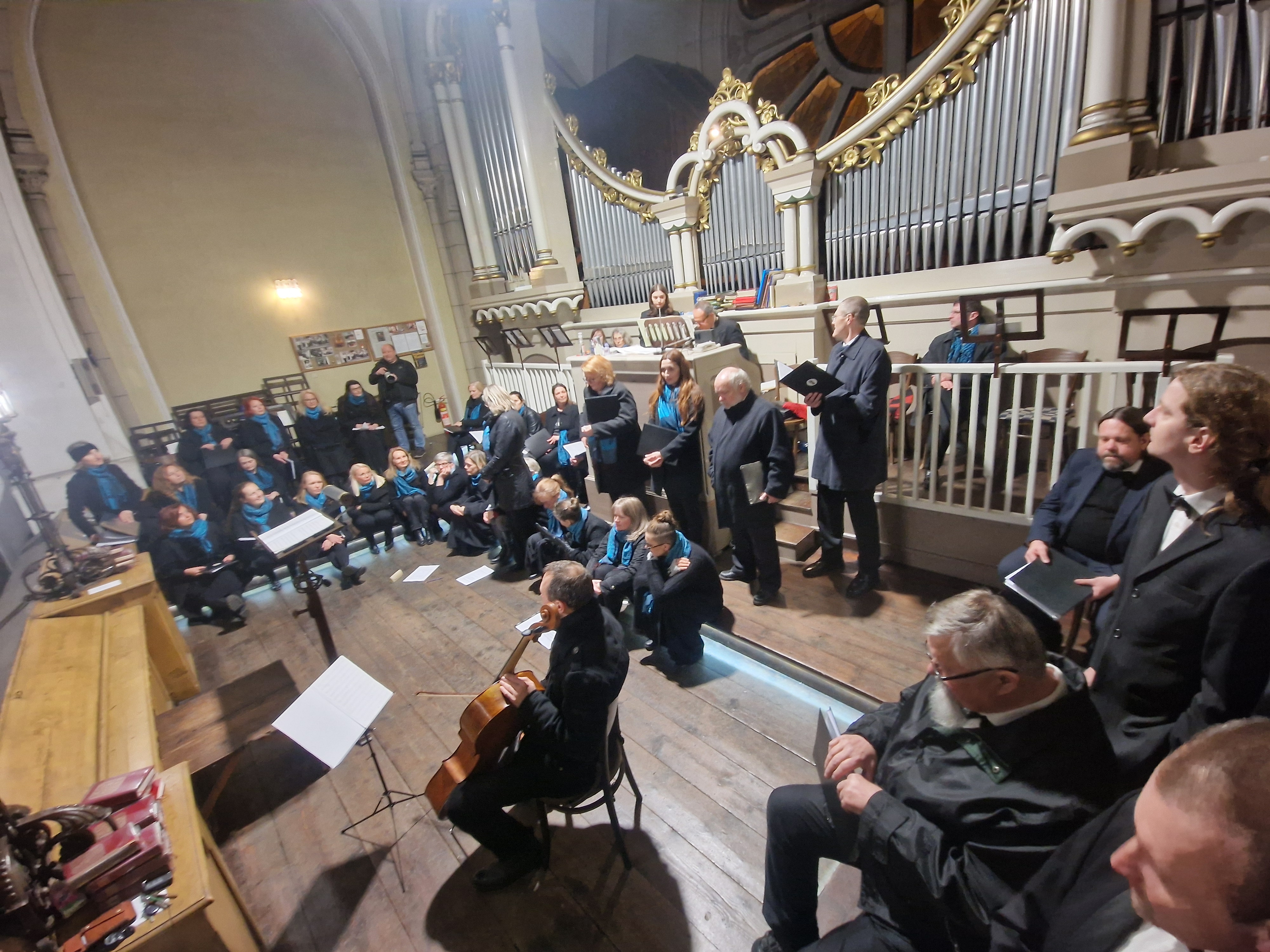 Kromě Stabat mater Františka Ignáce Tůmy pro smíšený sbor, violoncello a varhany se posluchači zaposlouchali i do tónů skladeb Jana Dismase Zelenky, Johanna Sebastiana Bacha a Dietricha Buxtehudeho. Vše pod taktovkou Vojtěcha Jouzy. Na varhany se představil Vojtěch Novák, na violoncello doprovodil sbor Petr Malíšek.