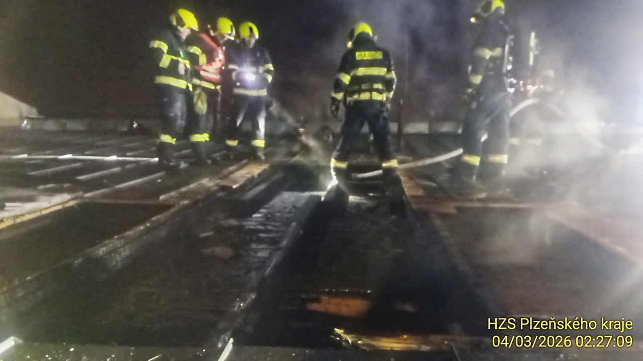 Všechny záchranné složky vyjížděly k požáru po půl 1 v noci. "Nasadili jsme tři úročné poudy. Uvnitř budovy se nacházely tři osoby, které jsme ke kontrole předali záchranářům. V rámci průzkumu jsme museli provést násilný vstup do dvou místností," potvrdil mluvčí krajských hasičů Petr Poncar. Hasiči podle něj pomocí termokamery vyhledávali skrytá ohniska a rezebírali střešní konstrukci.