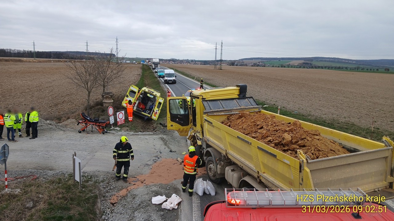 Aktualizováno 11:47 Srážka vozidla záchranné služby s nákladním autem uzavřela na téměř tři hodiny silnici I/27 na úrovni obce Dolní Lukavice. Převážený pacient neutrpěl žádné zranění, řidič záchranné služby a záchranářka utrpěli lehčí poranění a byli transportováni do nemocnice.
