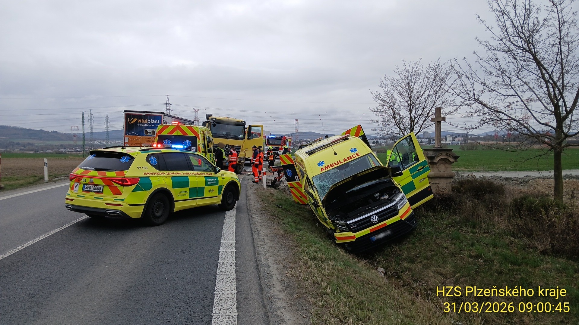 K nehodě sanitky s nákladním autem došlo před 9. hodinou přímo na hlavním tahu I/27 na úrovni v Dolní Lukavici. Vzhledem k rozsahu kolize a nutnosti vyšetřování musela policie inkriminovaný úsek okamžitě uzavřít v obou směrech.