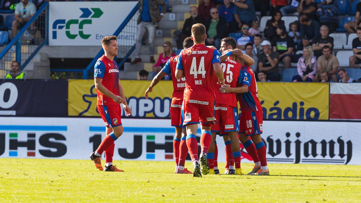 Úvodní šanci zápasu měl domácí tým. Dominik Preisler si na levé straně výborně naběhl, přízemním centrem poslal míč na Micka van Burena, jehož zakončení zblízka pohotově zneškodnil Jindřich Staněk. Na druhé straně zahrozil jako první Jhon Mosquera, který krásnou ranou z přímého kopu orazítkoval břevno. Když už to pomalu vypadalo, že v první půli gól nepadne, přišla 41. minuta. Jhon Mosquera obloučkem našel Jana Sýkoru, který si hravě poradil s obranou Slovanu, na hranici vápna zaseknul a střelou na zadní tyč otevřel skóre.
