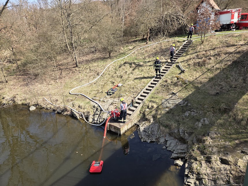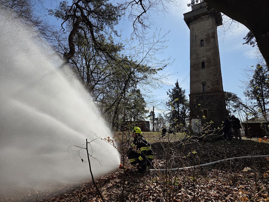 Téměř padesát dobrovolných hasičů z plzeňské Doubravky absolvovalo náročné cvičení v kopcovitém terénu. Aby simulovaný požár u rozhledny na Chlumu uhasili, museli vytvořit přes kilometr dlouhé hadicové vedení a překonat převýšení 120 metrů. Vodu k vrcholu hnala soustava čerpadel přímo z řeky Berounky.
